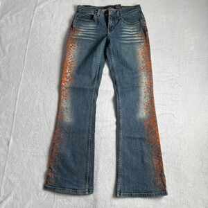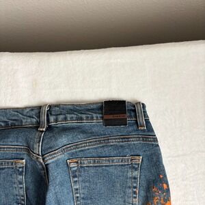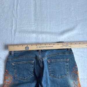 Y2K BeBe Jeans Womens Size 28 Blue Denim Paint Splatter Low Boot Mid