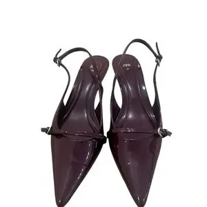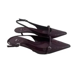 Zara burgundy patent faux leather Pointed Slingback kitten Heels size EU38
