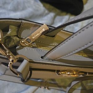 Elegant and versatile, this Michael Kors gray leather shoulder bag is perfect for any occasion. Its sleek design and high-quality material make it a must-have accessory.