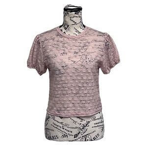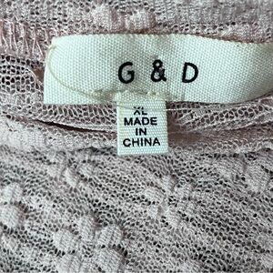 G & D Blush Pink Sheer Lace Crop Top XL Romantic Y2K Feminine Soft Girl Boho