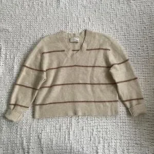 Aritzia Wilfred Women's Cream and Pink Striped Krause Sweater - Size Small