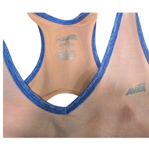 Avia Womens Activewear Tank Top Peach Orange Blue Trim Racerback Keyhole Large