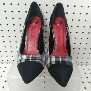 Penny Loves Kenny Black Women's Shoes| Plaid Pump Stiletto 4" High Heel Sz 8.5M