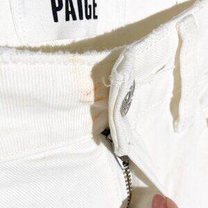 NWT PAIGE Cindy High Rise Cropped Straight Jeans in Tonal Ecru size 27 Rise: 10 1/2" Inseam: 28" Leg Opening: 14 1/4" 98% Cotton, 2% Spandex This high-rise, perfectly straight jean is lean through the leg and finishes at the ankle with a raw hem. This must-have pair comes in a soft ecru shade with double back belt loops and mixed metal hardware.