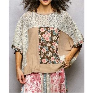 POL Floral Print Semi Sheer Short Sleeve Loose Fit Top
