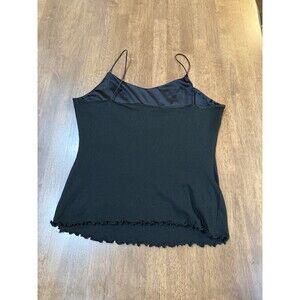 Vintage Y2K Charlotte Russe Black Cami Top Glitter Heart Lettuce Hem L Coquette