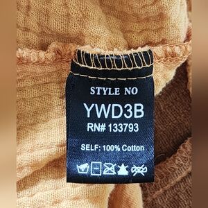 POL Golden yellow cotton mini dress, button down, frayed hem, oversized, M