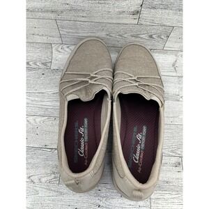 Skechers Classic Fit Taupe Slip On Bungee Loafers 23129 Womens 8.5 Memory Foam