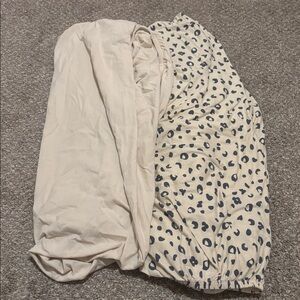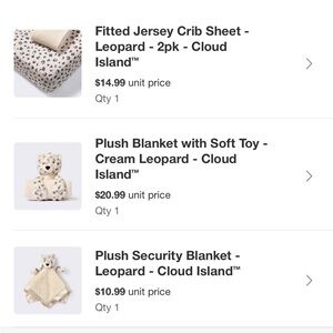Leopard print crib sheet and plush security blanket. Includes soft toy. Cozy and stylish for nursery.