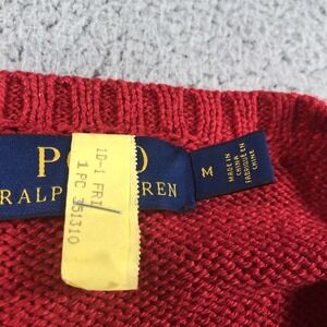 Polo Ralph Lauren Sweater Mens Medium Red Bear Knit Cotton Linen Classic RL