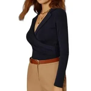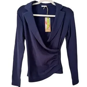 NWT OGL Collared Surplice Top ProWarm Eco Mousse Navy Blue Size Small