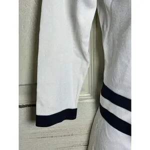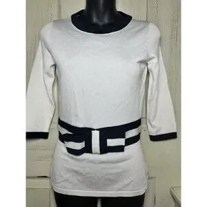 Carolina Herrera White And Navy Top W/ 3/4 Sleeves And Bow Sz S