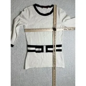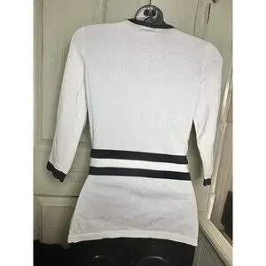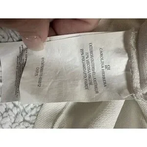The Carolina Herrera White and Navy Top with 3/4 Sleeves and Bow in size S is a stylish and feminine blouse suitable for women. Made from a blend of polyamide and viscose, this pullover top features a round neckline, classic/fitted sleeves, and a charming bow detail. The top is easy to care for with machine washable instructions, making it a convenient and versatile addition to any wardrobe. The combination of white and navy colors adds a touch of elegance, while the Carolina Herrera brand ensures quality and sophistication.