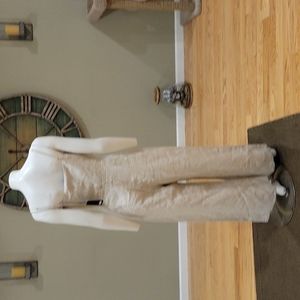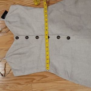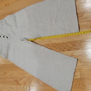 Reformation Torta 100% Linen Jumpsuit in Sand. Features button and snap front closure sweetheart neckline with adjustable spaghetti straps and a wide leg. Pictures taken of aprox measurements. Layer Office Summer Beach Vacation Brunch Coastal Nuetral
