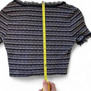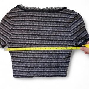 Y2K Fairy Grunge Goth Baby Tee Lace Trim Black and Gray Crop Top, Size XS/S