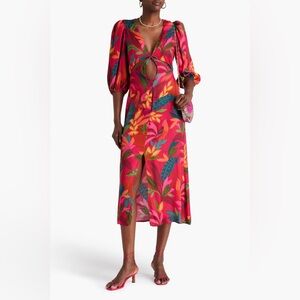 FARM Rio Colorful Leaf Print Cutout Midi Dress