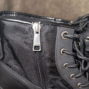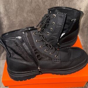 Stylish and durable black men's boots, perfect for any occasion. These boots offer comfort and a sleek design. Zippers work on both boots, no scuffs minimal creasing