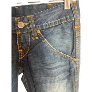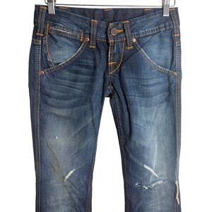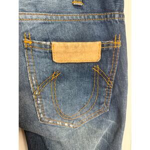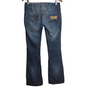 True Religion Joey Flare Jeans Size 26 Made USA Low Rise Distressed Cotton EUC