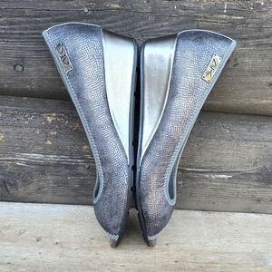 Anne Klein Sport Camrynne Modern Classic Metallic Silver Snake Print Peep Toe Comfort Wedge Women's Size 7M