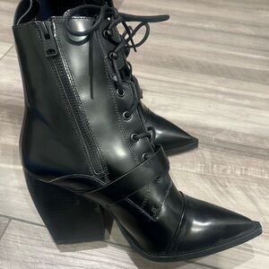 Chic and edgy black lace-up boots. Perfect for versatile styling.