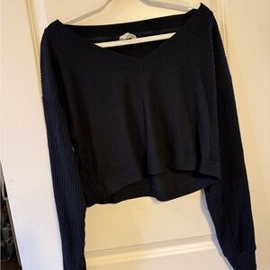 Chic black crop top with V-neck. Long sleeves for added style.