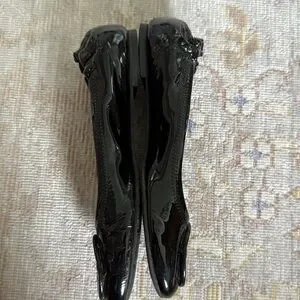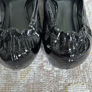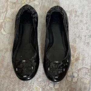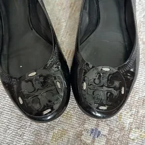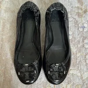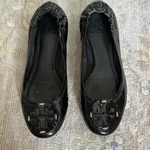 Tory Burch Black Patent Leather Classic Logo Flats Size 6.5