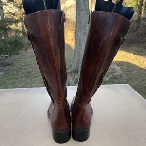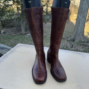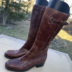 Vintage Civico 10 Brown Leather Riding Boots Women Sz 10 Braid Accent Side Zip