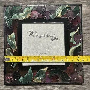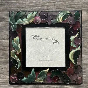 New Stain Glass Grapes Leafs Hand Painted Picture Frame 5.5 Design Works 3.5x3.5