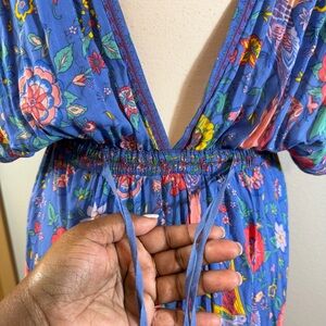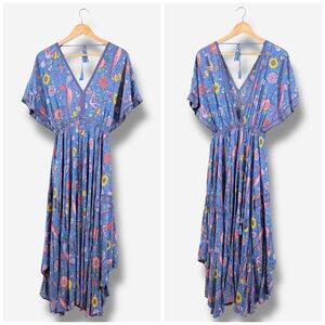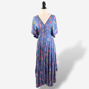 Spell Lovebird Half Moon Gown Deep Sky Blue Maxi Dress Size M Boho Festival