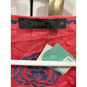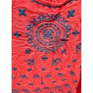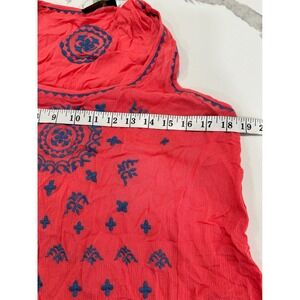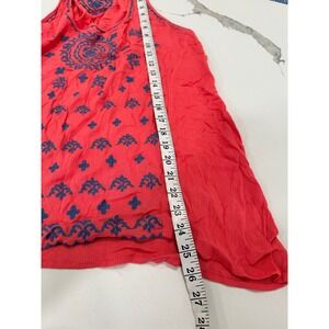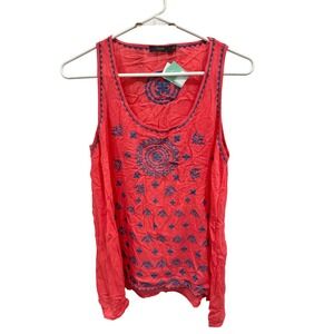 THML Embroidered Tank Top Sleeveless Blouse Coral Blue Medallion Bohemian Medium