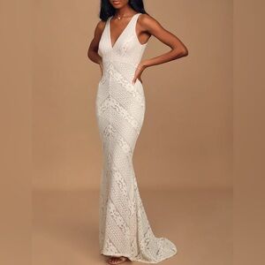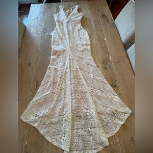 Lulu's Cream Lace Maxi Wedding Dress Nude Lining S NWT