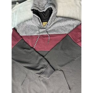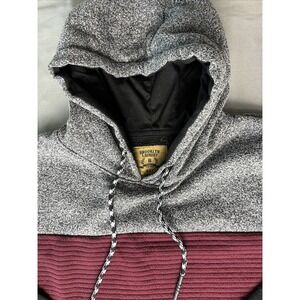 This Brooklyn Laundry Hoodie Pullover is the perfect addition to your wardrobe. The black, gray, and red color block pattern makes it a stylish choice for any occasion. The drawstring closure and hooded design add to its versatility, while the long sleeves and relaxed fit ensure comfort.