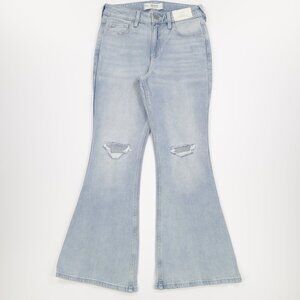 Hollister Women's High Rise Ripped Stretch Denim Flare Jeans Light Blue Size 14s