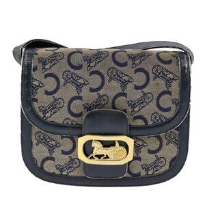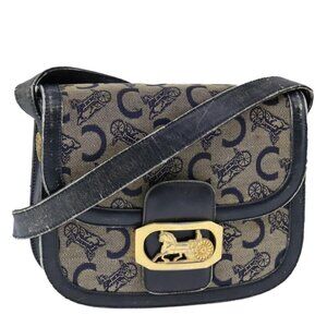 Pre-Owned Authentic CELINE C Sulky Shoulder Bag Canvas Leather Navy