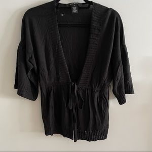 Nine west black baby doll style cardigan with tie waist. Short bell sleeve. Size medium. In excellent condition.