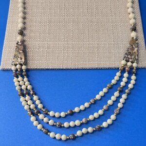 Leopard Skin Jasper Stone Multi-Strand Bib 16 Inch Slip On Necklace B1040