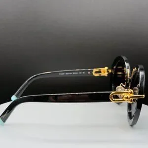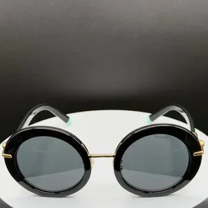 Tiffany & Co TF 4201 sunglasses feature a sleek black round frame with grey lenses for a classic look. Perfect for adding sophistication to any outfit while providing UV protection.