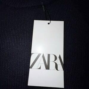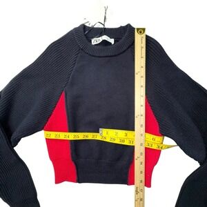 Zara Cropped Knit Sweater Ribbed Color Block Navy Blue & Red 90s Retro Sz S NWT