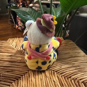 Bring joy to your child with this adorable clown stuffed animal, featuring cheerful red and blue accents. Perfect for cuddling and imaginative adventures.juggles date of birth October 9, 2004.