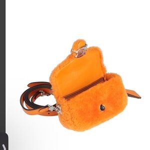 Bright orange shearling mini mini adorable bag by Coach. Plush texture with a chic design. Has crossbody strap. Striking pop of color!