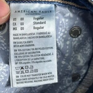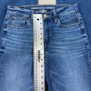 American Eagle Jeans Womens 00 Blue Flared High Rise Raw Hem Whiskered Y2K Style