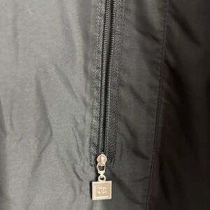 Elegant black jacket with white accents. Features classic Chanel design. Missing size but I’m a medium and it fits
