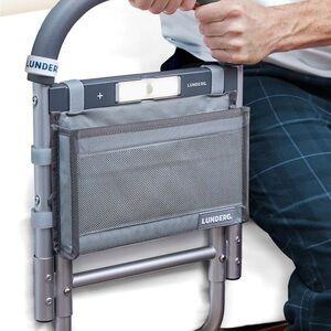 Sturdy bedside safety rail with easy snap and lock feature. Ideal for added security and support.