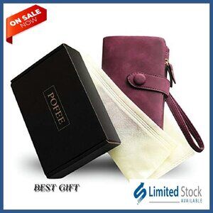 Women's RFID Leather Wristlet Wallet with 16 Card Slots & Coin Purse