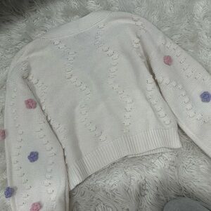 Francesca's Collections Cream Knit Sweater floral embroidered