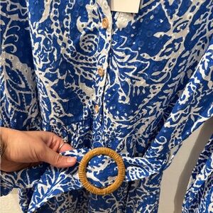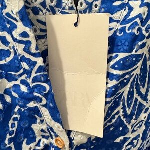 Zara Blue and White Long Sleeve Dress