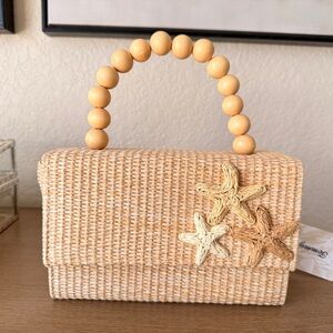 Tommy Bahama bag appears to be a beaded clutch or woven handbag featuring starfish appliqués