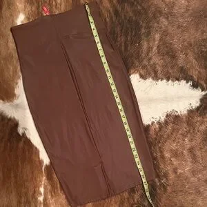 SPANX Medium Chic pencil skirt in chocolate brown. Sleek and form-fitting design. Ideal for versatile styling.