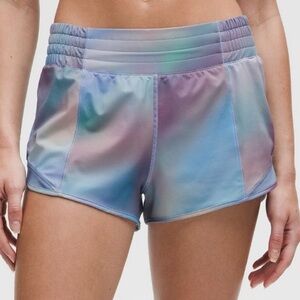 Lululemon Hotty Hot Gym Shorts in Chroma Drift Blue Multi. High Rise. 1 zippered pocket on the side. Has an elastic waist and drawstring. Built in liner. Quick dry stretchy material. New with tags. 2.5” inseam. Size 14.