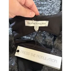 Dress the Population midi dress. Size XXL. Black sequin exterior. Halter neckline. Low back design. Sleeveless silhouette. Lined interior.